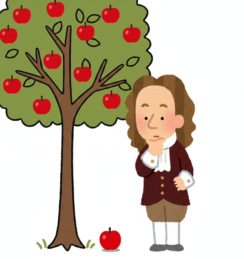 木から落ちたりんごを見て、ニュートンは世界を変えた——よく知られた話です。重要なのは、落ちた事実ではなく「なぜ下に落ちるのか」と問い続けたことでした。月も、星も、りんごも同じ力に従っている。そうして導かれた重力の法則は、身近な果実が宇宙の仕組みへとつながる入口になったのです。
